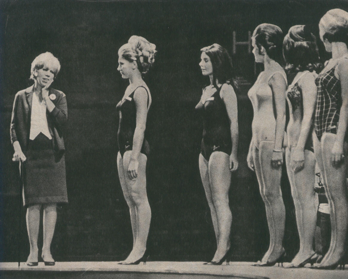 Os homens do concurso, não satisfeitos em fazer as moças desfilar com um vestido enorme, pesado (para martírio das candidatas de Mato Grosso, que operou o pé; do Espírito Santo, com o dedão do pé inchado; e de São Paulo, que estava com febre), e depois de maiô, obrigam também as sonhadoras mocinhas usarem traje típico.